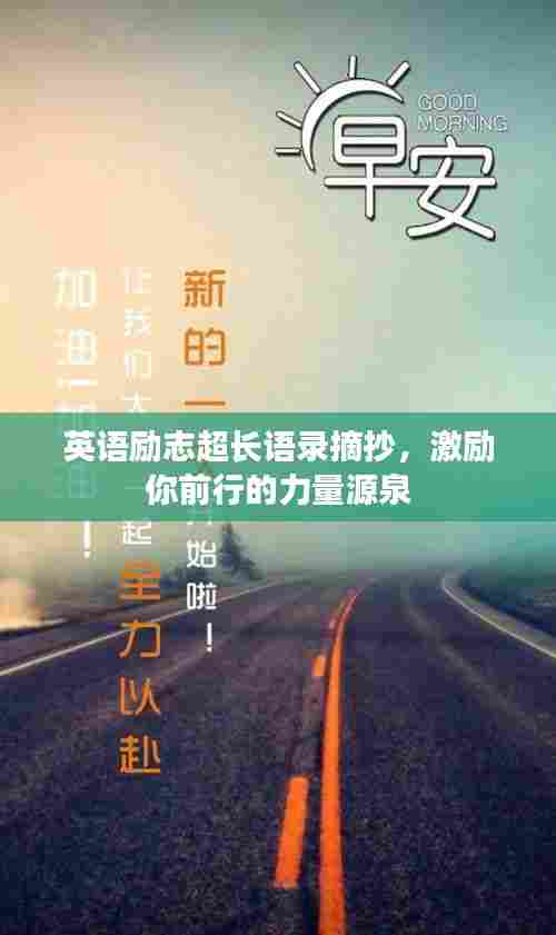 在人生的旅途中,我们时常需要一些励志的话语来激励自己,鼓舞前行,英语励志语录以其独特的魅力和深刻的内涵,为我们提供了源源不断的动力,以下是一些英语励志超长语录摘抄,愿它们能激励你在人生的道路上勇往直前。