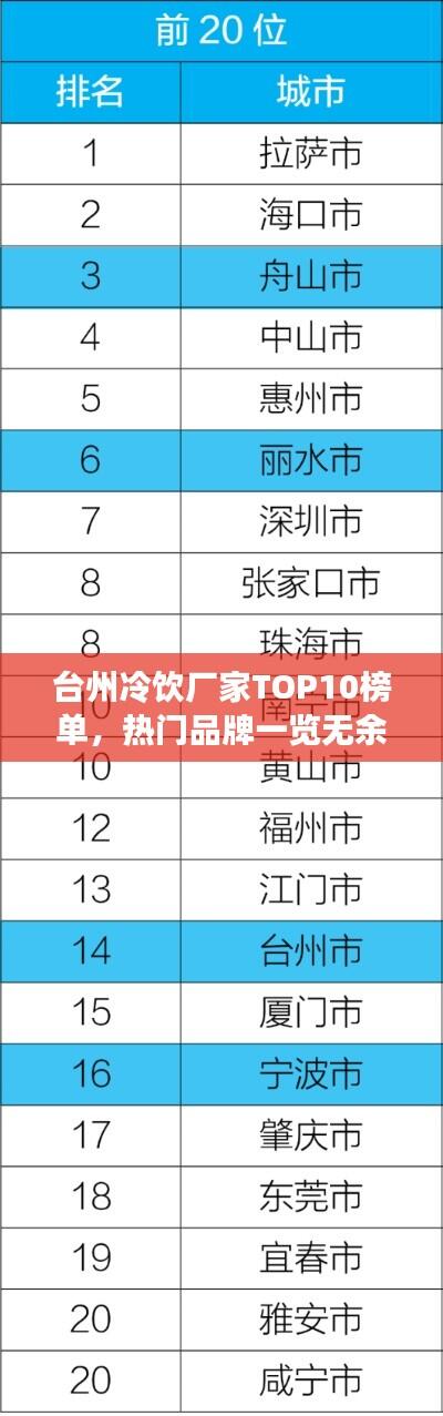 随着夏季的到来,冷饮市场逐渐进入旺季,在台州地区,众多的冷饮厂家纷纷崭露头角,为消费者带来各式各样的冷饮产品,本文将介绍台州地区冷饮厂家排名前十名,以供参考。