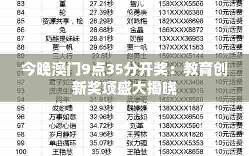 ``` (注:实际操作中请根据最新最准确的资料进行修改和补充。)转载请注明来自昌宝联护栏,本文标题:《今晚澳门9点35分开奖:教育创新奖项盛大揭晓》