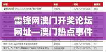 通过对“雷锋网澳门开奖论坛网址—澳门热点事件讨论区”中各个板块的文献资料进行深入分析,我们可以了解到更具体的内容: