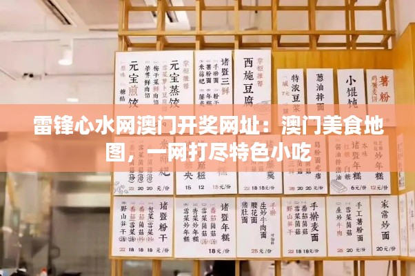 在众多文献资料中,有一部专注于介绍澳门美食与小吃的文献——《雷锋心水网澳门开奖网址:澳门美食地图,一网打尽特色小吃》。这部文献不仅是一份关于澳门地道美食的详尽记录,也是游客和美食爱好者的向导。本文旨在对这部文献进行研究性说明,详细解读其内容和构成,为读者提供一个澳门美食的全面指南。
