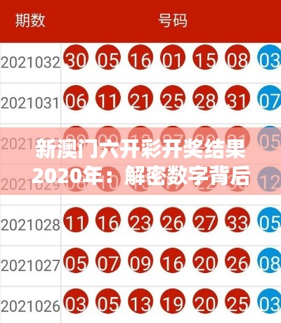 本文旨在研究2020年新澳门六开彩开奖结果中数字的数学规律。该研究不涉及赌博或彩票,而是关注于数字本身以及它们之间存在的数学关系。通过对开奖结果的深入分析,我们试图揭示潜在的数学模式,以促进对概率、组合学以及统计学等数学领域的理解和应用。