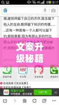 文案的不断升级,是我们适应时代变化的体现,在互联网时代,信息的传播速度极快,消费者的需求也日益个性化,只有不断创新,不断升级,才能吸引消费者的注意力,才能在激烈的市场竞争中脱颖而出,不断升级的文案,不仅能让我们的产品更好地满足消费者的需求,还能提升我们的品牌形象,增强消费者的品牌忠诚度。