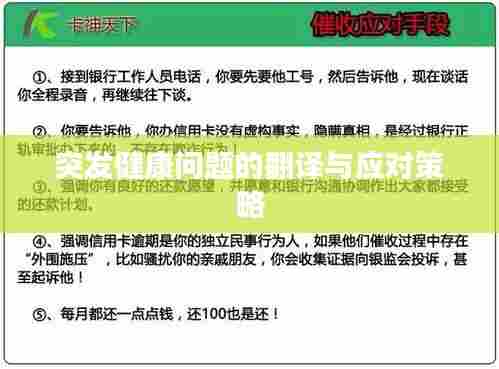 在全球化背景下,人们跨国交流日益频繁,健康问题翻译的重要性愈发凸显,突发健康问题翻译作为医学翻译领域的一个重要分支,对于提高医疗服务的国际化和标准化水平至关重要,本文将探讨突发健康问题翻译的重要性、挑战及应对策略。