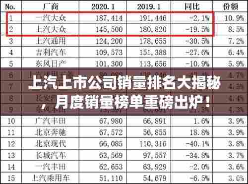 随着汽车市场的繁荣和发展,各大汽车公司的竞争也日益激烈,作为中国领先的汽车制造商之一,上汽集团的表现备受关注,本文将深入探讨上汽上市公司在市场上的表现,尤其是其月销量排名。