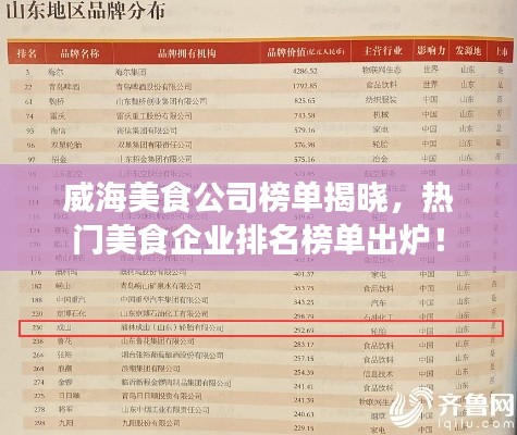 就是威海美食公司的排名介绍,这些公司凭借独特的菜品和优质的服务,在威海美食界占据了一席之地,如果您有机会到威海旅游,不妨去这些公司品尝一下威海的美食,感受威海的美食文化,也欢迎全球的美食爱好者们来威海,共同探寻威海的美食之旅。